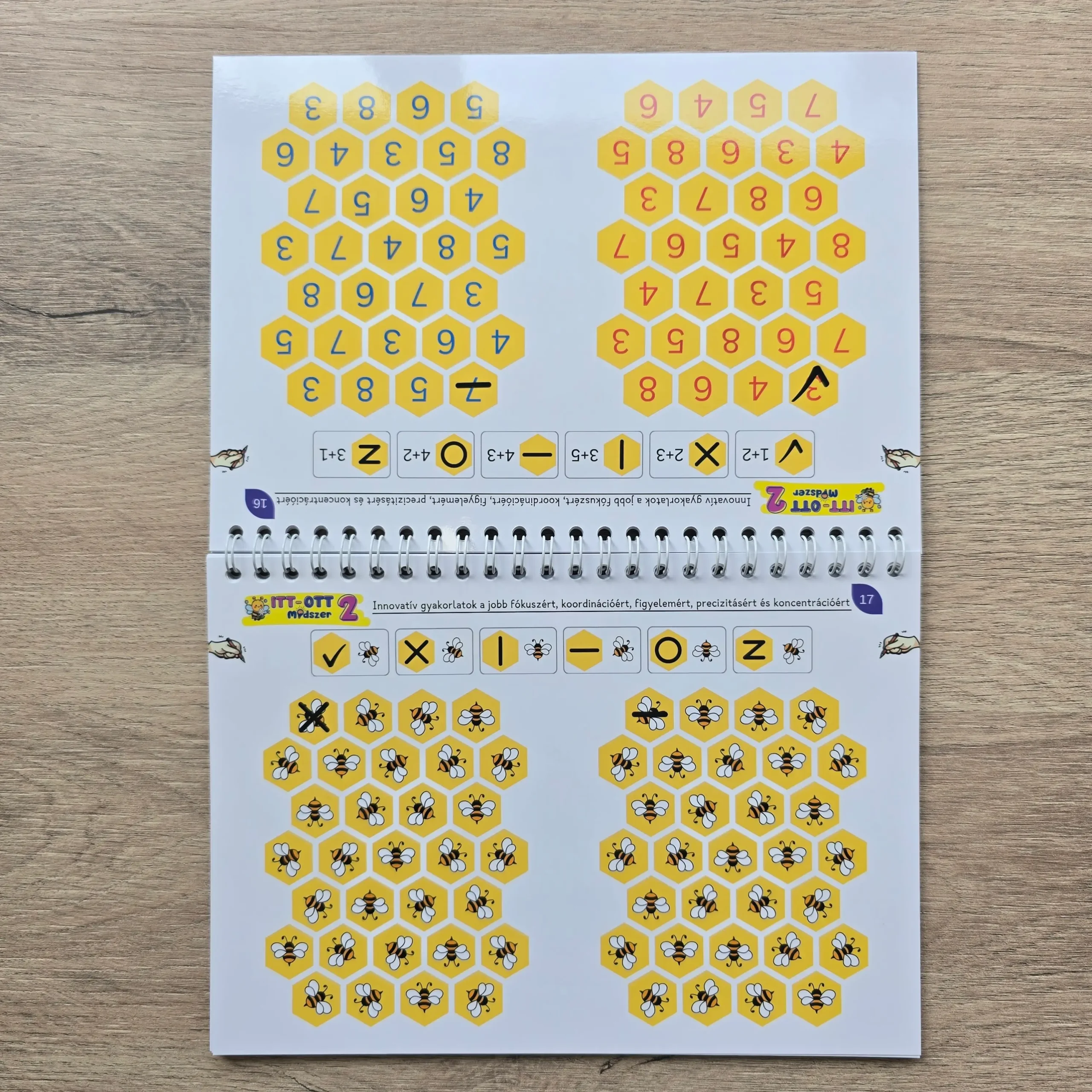 Inhalt: 32 logische Gehirnjogging-Übungen mit Blumen, Bienen und Bienenstöcken + 2 abwischbare Marker (schreiben und abwischen).
